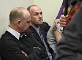 Заместители генерального директора фармацевтической компании ЗАО "Брынцалов-А" Сергей Новиков (слева) и Олег Жаров (в центре) на заседании Симоновского районного суда. Татьяна Брынцалова и три топ-менеджера компании обвиняются в незаконном предпринимательстве и незаконном использовании товарного знака.