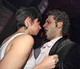 Телеведущая Аврора (справа) с супругом, режиссером Алексеем Трейманом (слева) на After party Russian Fashion Week (RWF)/Российской недели моды в клубе The Most.