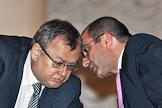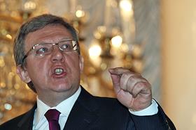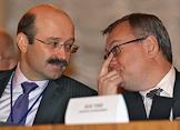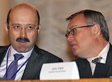 Президент Ассоциации Банков России Гарегин Тосунян (слева) и заместитель председателя правительства России, министр финансов Алексей Кудрин (справа) на XX съезде Ассоциации российских банков. Съезд прошел в Колонном зале Дома союзов.