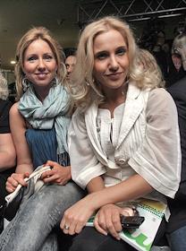 Russian Fashion Week (RFW) / Российская Неделя Моды. Телеведущая Дарья Субботина (слева) и певица Юлия Ковальчук (справа) на показе коллекции дизайнерского дуэта Анны Чистовой и Марины Эндоуровой (Chistova&Endourova) под названиеи "Дно". Показ прошел на площадке Конгресс-центра ЦМТ на Красной Пресне.