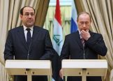 Премьер-министр Ирака Нури аль-Малики (слева) и председатель правительства России Владимир Путин (справа) во время официальной встречи в Доме приемов правительства России.