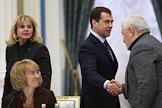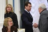 Президент России Дмитрий Медведев (слева) и председатель Совета при Президенте России по содействию развитию институтов гражданского общества и правам человека, председатель президиума Общероссийского общественного движения "Гражданское достоинство" Элла Памфилова (справа) на заседании Совета по содействию развитию институтов гражданского общества и правам человека в Кремле.