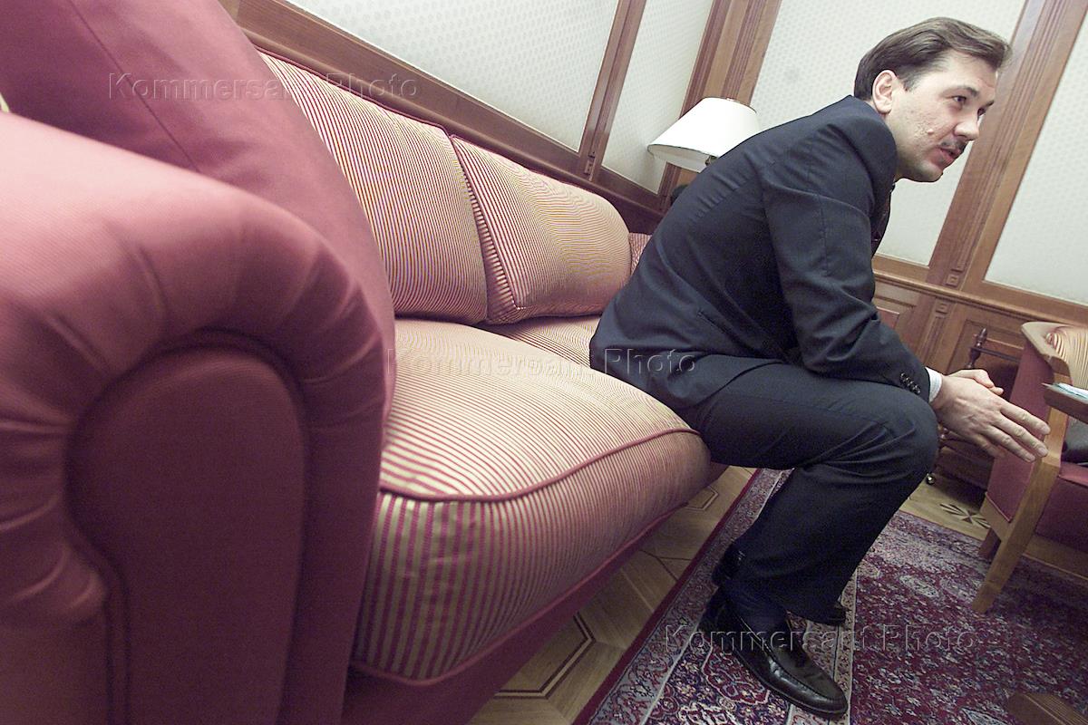 Head of the Gazprom property management department Alexander Krasnenkov is interviewed in his office.