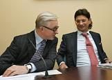 Президент Российского союза промышленников и предпринимателей (РСПП) Александр Шохин (слева) и вице-президент нефтяной компании "Лукойл" Леонид Федун (справа) во время заседания "круглого стола" на тему "Функционирование институтов развития в условиях кризиса" в рамках проведения Недели российского бизнеса. Заседание прошло в здании РСПП.