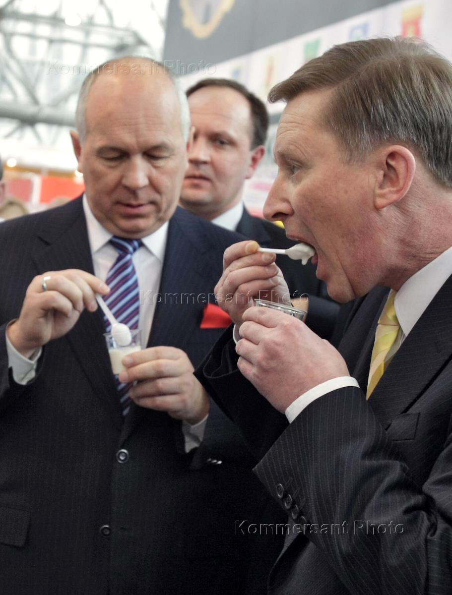 Заместитель председателя правительства России Сергей Иванов (слева) на церемонии открытия выставки "Высокие технологии ХХI века" в Экспоцентре на Красной Пресне.