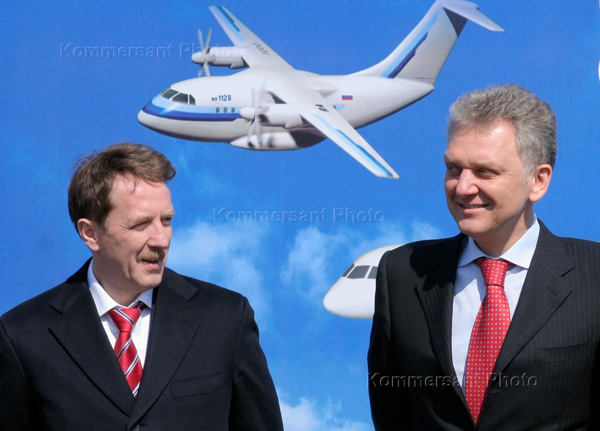 Губернатор Воронежской области Алексей Гордеев (слева)и министр промышленности и энергетики России Виктор Христенко (справа) во время посещения Воронежского авиационного завода.