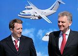 Губернатор Воронежской области Алексей Гордеев и министр промышленности и энергетики России Виктор Христенко на Воронежском авиационном заводе 23 апреля 2009 г.