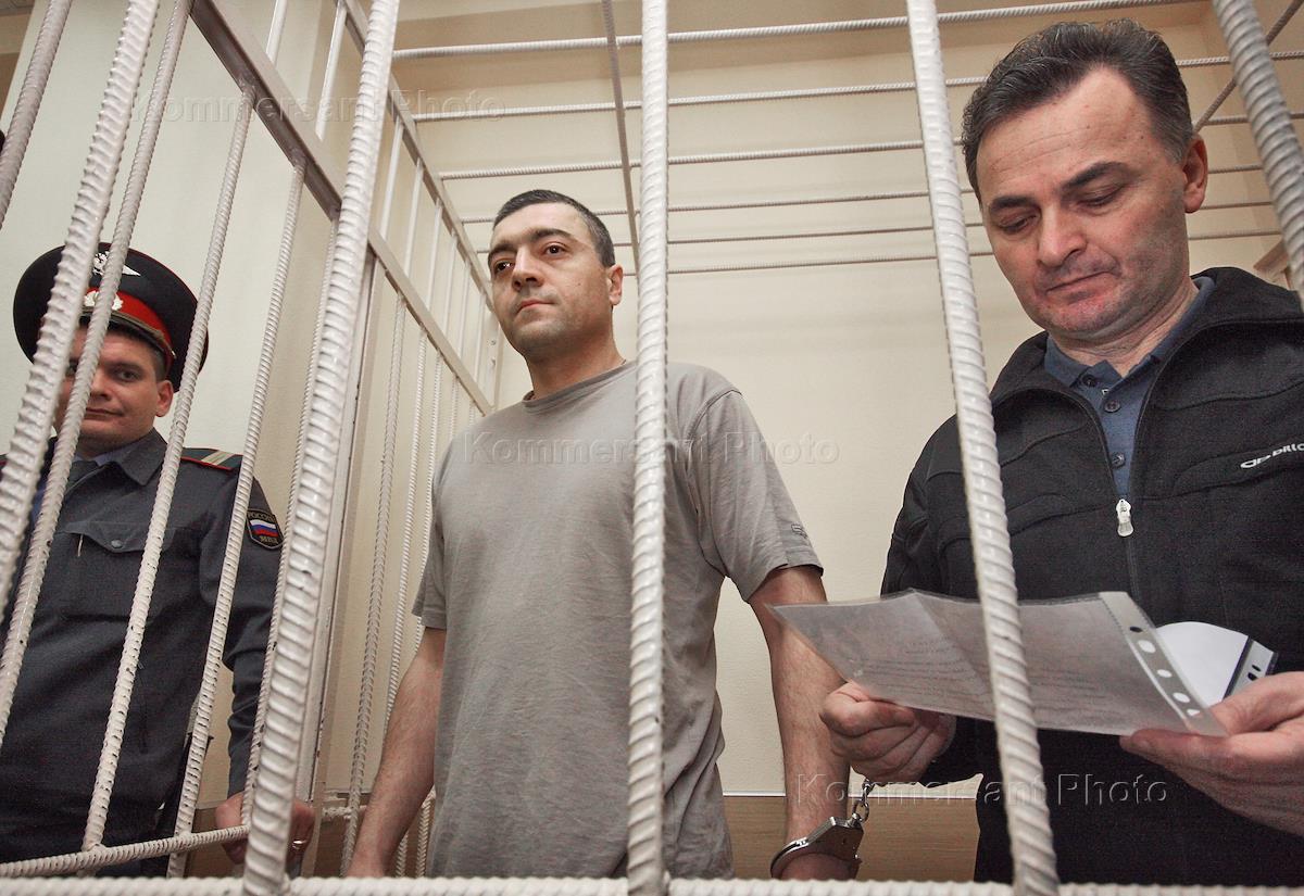 Бывший генеральный директор ОАО "АТК "Авиаремснаб" Мусаил Исмаилов (в центре) и его заместитель Александр Кутумов (справа) во время заседания Савеловского районного суда. Исмаилов и Кутумов обвиняются в поставках некондиционных запчастей к истребителям "МиГ-29" в Польшу.