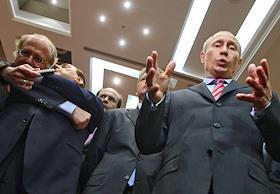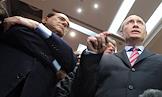 Председатель Совета министров Итальянской Республики Сильвио Берлускони (второй слева) и председатель правительства России Владимир Путин (справа) во время официальной встречи в отеле "Рэдиссон САС Лазурная".