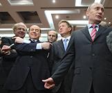 Слева направо: председатель правительства России Владимир Путин, председатель правления ОАО "Газпром" Алексей Миллер и председатель Совета министров Итальянской Республики Сильвио Берлускони во время церемонии подписания пакета документов по развитию проекта "Южный поток". Церемония прошла в конгресс-холле отеля "Рэдиссон САС Лазурная".