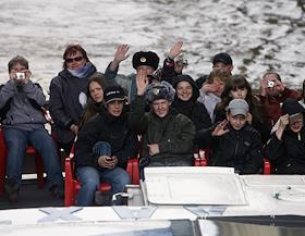 Жанровая фотография. Туристы во время прогулки по каналам на прогулочном катере.