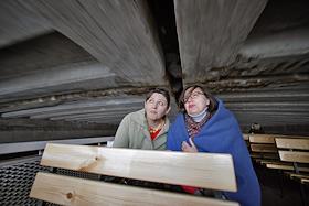 Жанровая фотография. Парень с девушкой сидят на опоре моста.