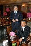 Член комитета Государственной думы России по информационной политике, информационным технологиям и связи и певец Иосиф Кобзон (слева) и вице-президент группы компаний "АСТ" Алекпер Исмаилов (справа) перед входом в отель Mardan Palace.
