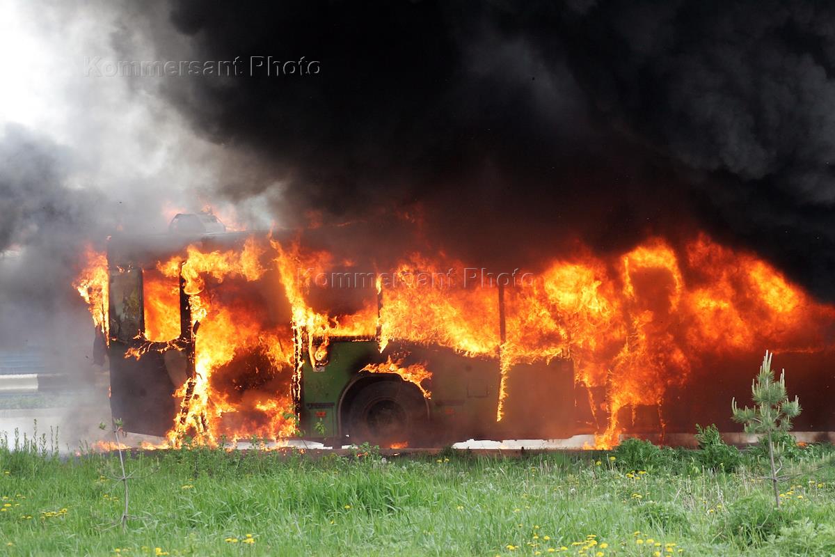 Пожар пассажирского автобуса МАЗ на конечной остановке маршрута.