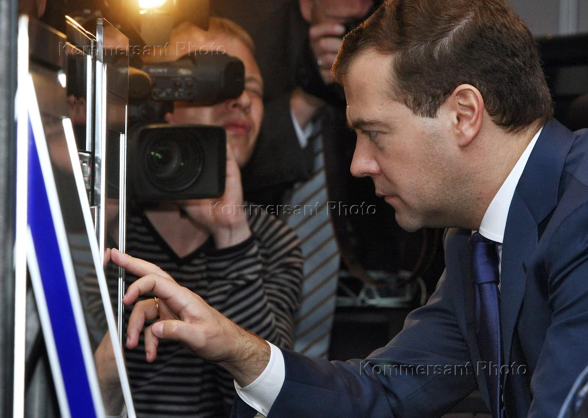 Президент России Дмитрий Медведев во время посещения предприятия технико-внедренческой компании "Транзас".
