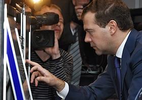 Президент России Дмитрий Медведев во время посещения предприятия технико-внедренческой компании "Транзас".