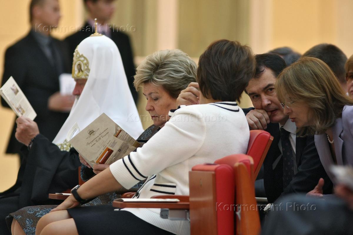 Патриарх Московский и всея Руси Кирилл (в центре) перед началом демонстрации фильма о создании Президентской библиотеки имени первого президента России Бориса Ельцина.