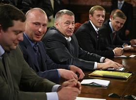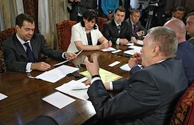 Лидер Либерально-демократической партии России (ЛДПР), заместитель председателя Государственной думы России Владимир Жириновский на встрече президента России Дмитрия Медведева с руководством Либерально-демократической партии России в государственной резиденции "Барвиха".
