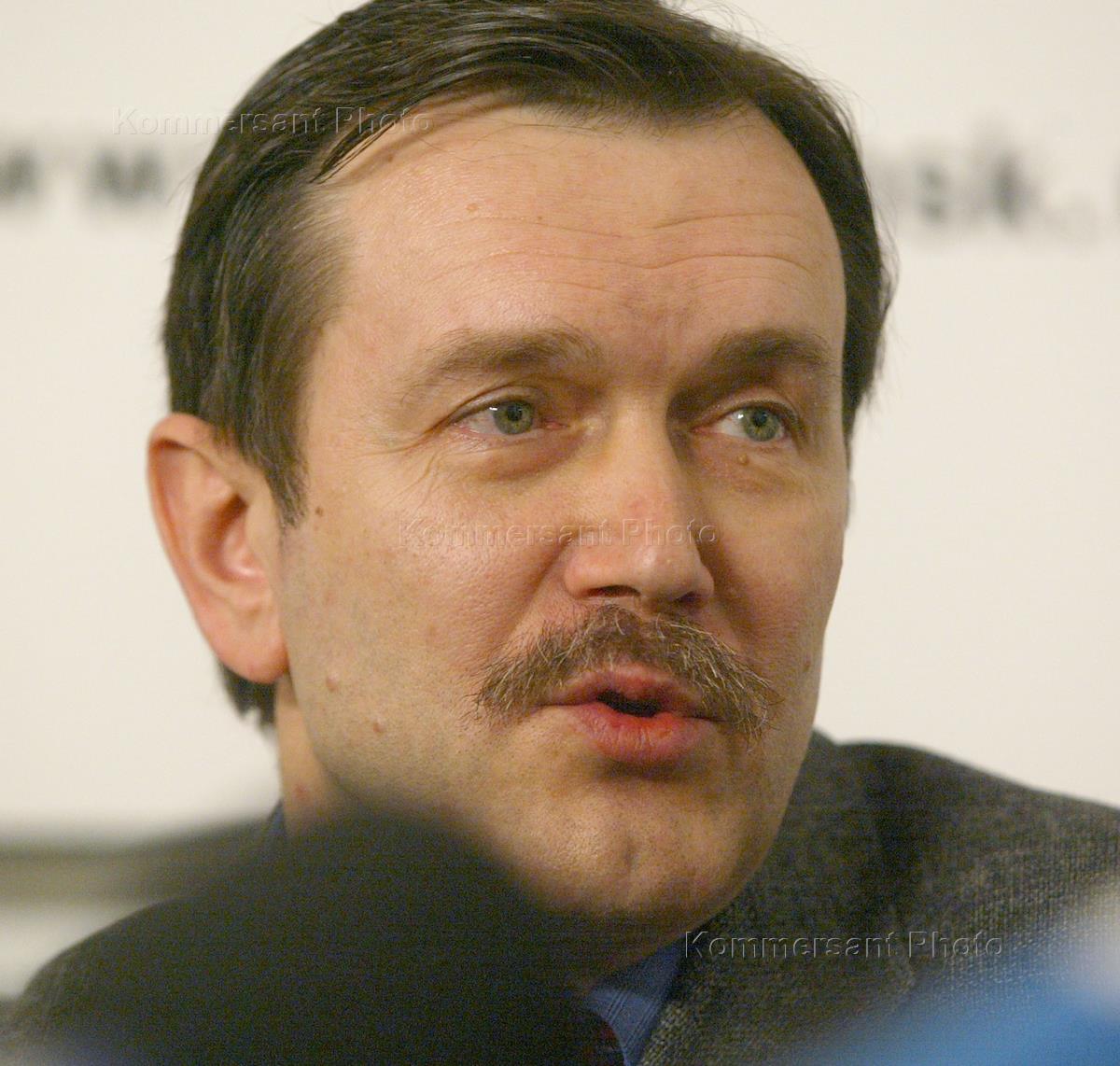 Министр России по делам печати, телерадиовещания и средств массовых коммуникаций Михаил Лесин во время пресс-конференции в эфире радиостанции "Эхо Москвы". Пресс-конференция была посвящена ситуации вокруг Московской независимой вещательной компании (МНВК) "ТВ — 6 Москва".