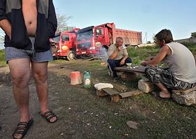 Жанровая фотография. Рабочие на строительстве олимпйских объектов в Имеретинской долине.