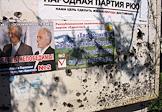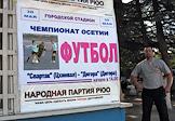 Парламентские выборы в Южной Осетии. Предвыборная агитация Народной партии РЮО и афиша футбольного матча "Спартак" (Цхинвал) - "Дигора" (Дигора).