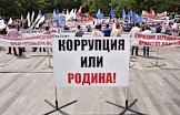 Участники митинга против коррупции, организованный партией "Правое дело", движением "Народный собор" и движением "Справедливость" в Новопушкинском сквере. Плакат с надписью "Коррупция или Родина!".