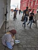 Нищая женщина просит милостыню у Воскресенских (Иверских) ворот.