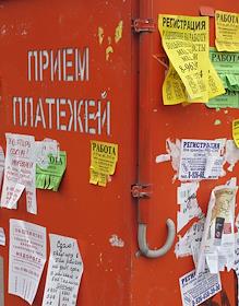 Жанровая фотография. Объявления наклеенные на терминал по оплате платежей.