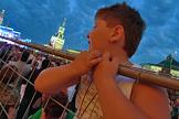 Празднование Дня независимости России на Красной площади. Ребенок во время салюта на Красной площади.
