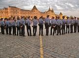 Празднование Дня независимости России на Красной площади. Сотрудники милиции в оцеплении на Красной площади.