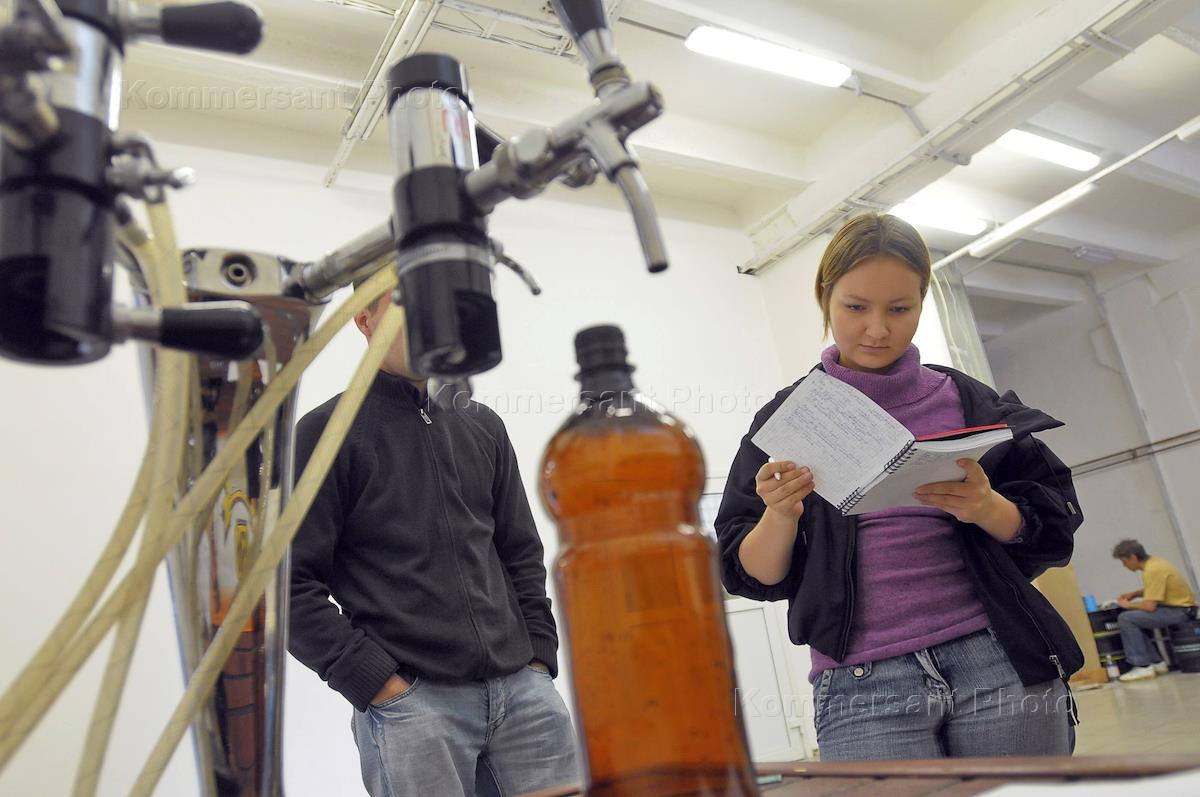 Корреспондент издательского дома "КоммерсантЪ" Анастасия Каримова в производственном цехе пивоваренной компании "Мюнхель".