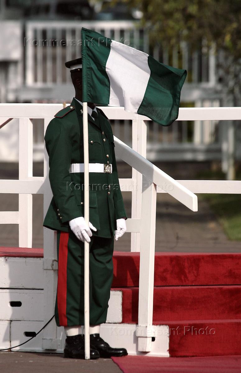Визит президента России Дмитрия Медведева в Нигерию. Сотрудники полиции Нигерии на официальной церемонии встречи президента России.