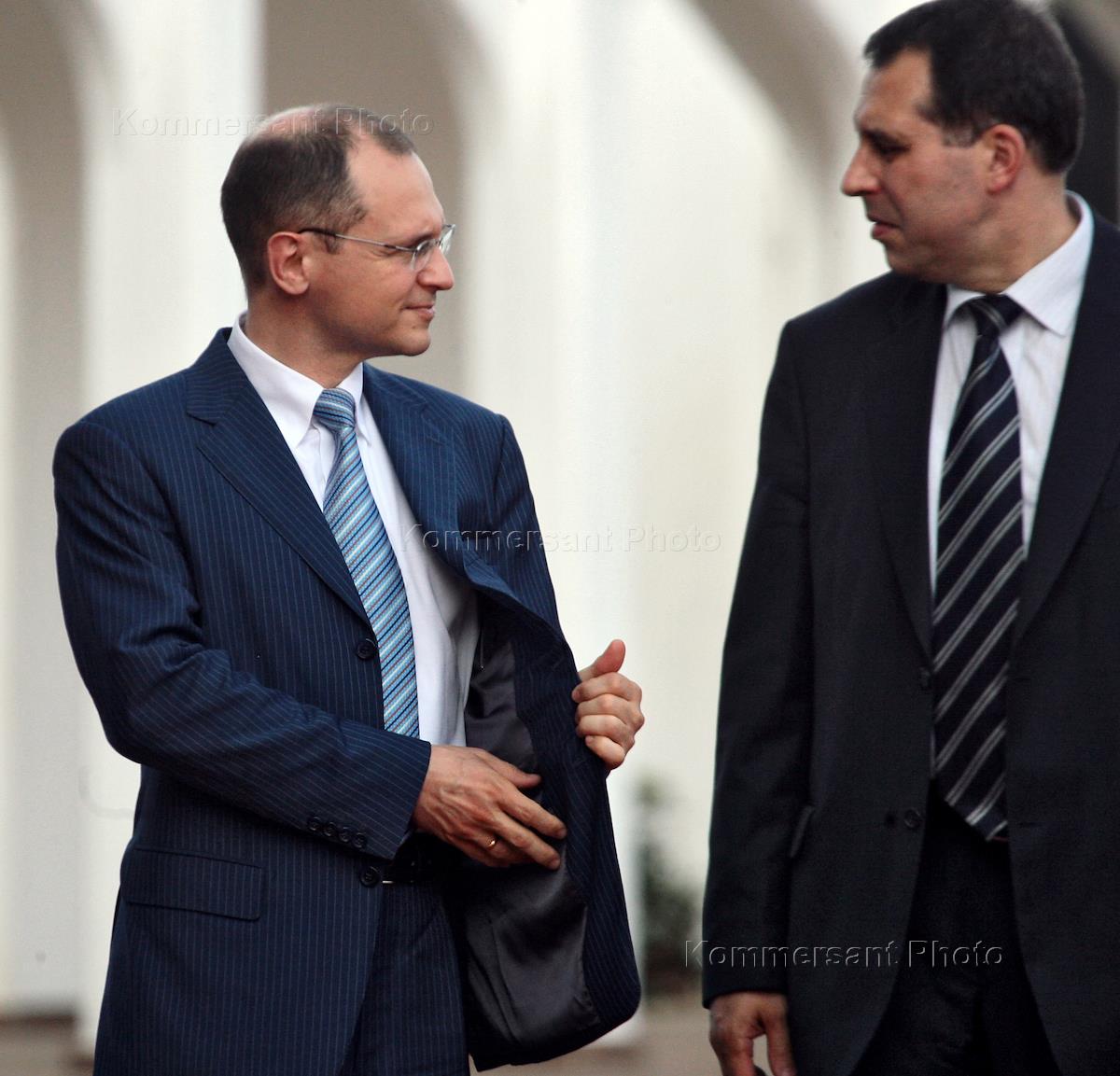 Министр юстиции России Александр Коновалов (слева) и министр энергетики России Сергей Шматко (справа) на официальной церемонии встречи президента России Дмитрия Медведева и президента Нигерии Умару Муса Ярадуа.