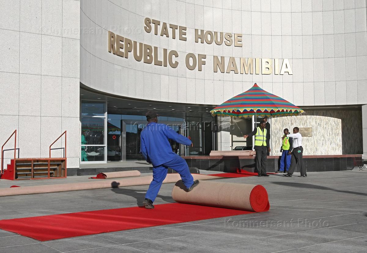 Russian President Dmitry Medvedev visits Namibia. Preparation for the official meeting ceremony.