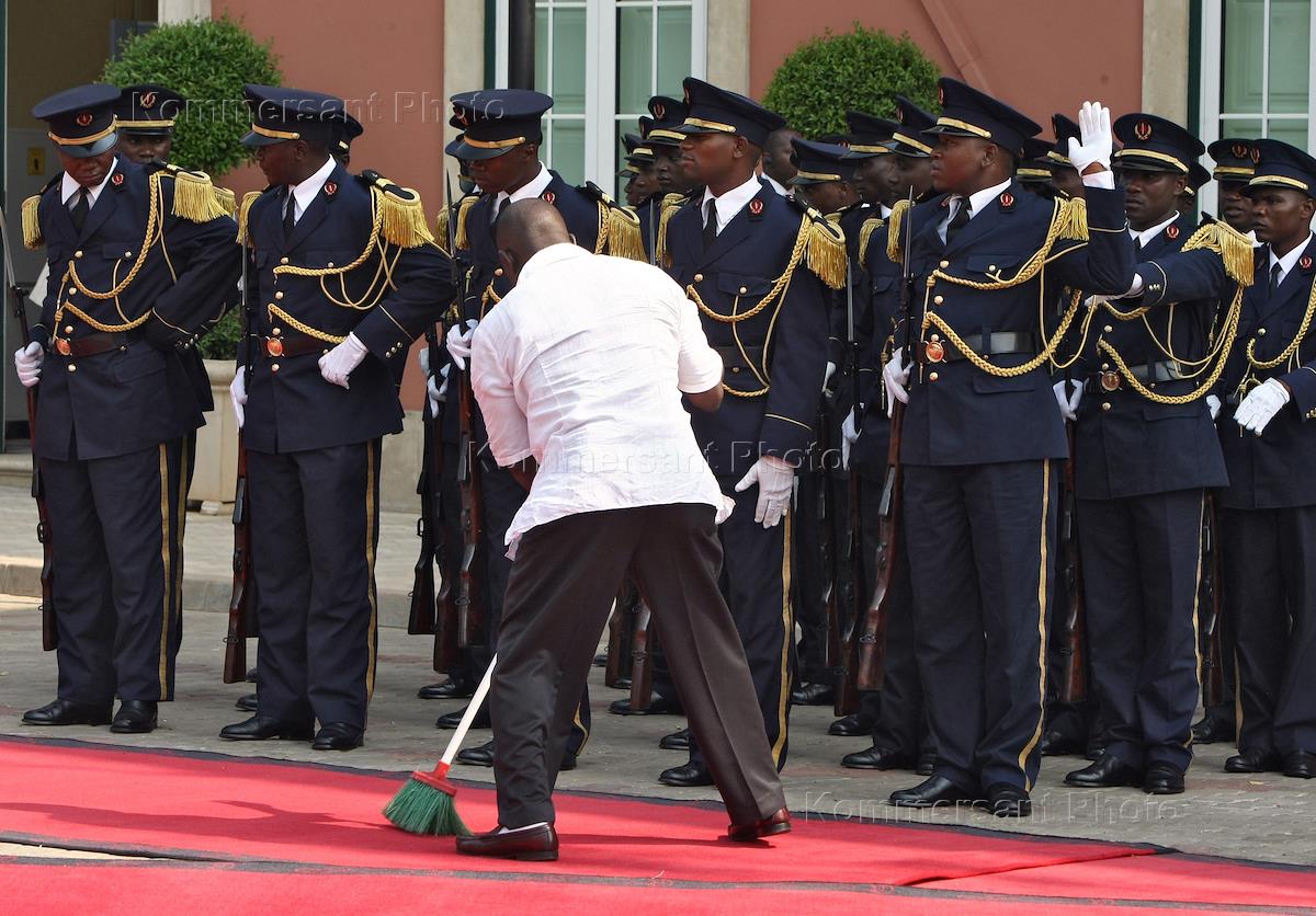 Визит президента России Дмитрия Медведева в Республику Анголу. Гвардейцы почетного караула во время официальной церемонии встречи президента России.