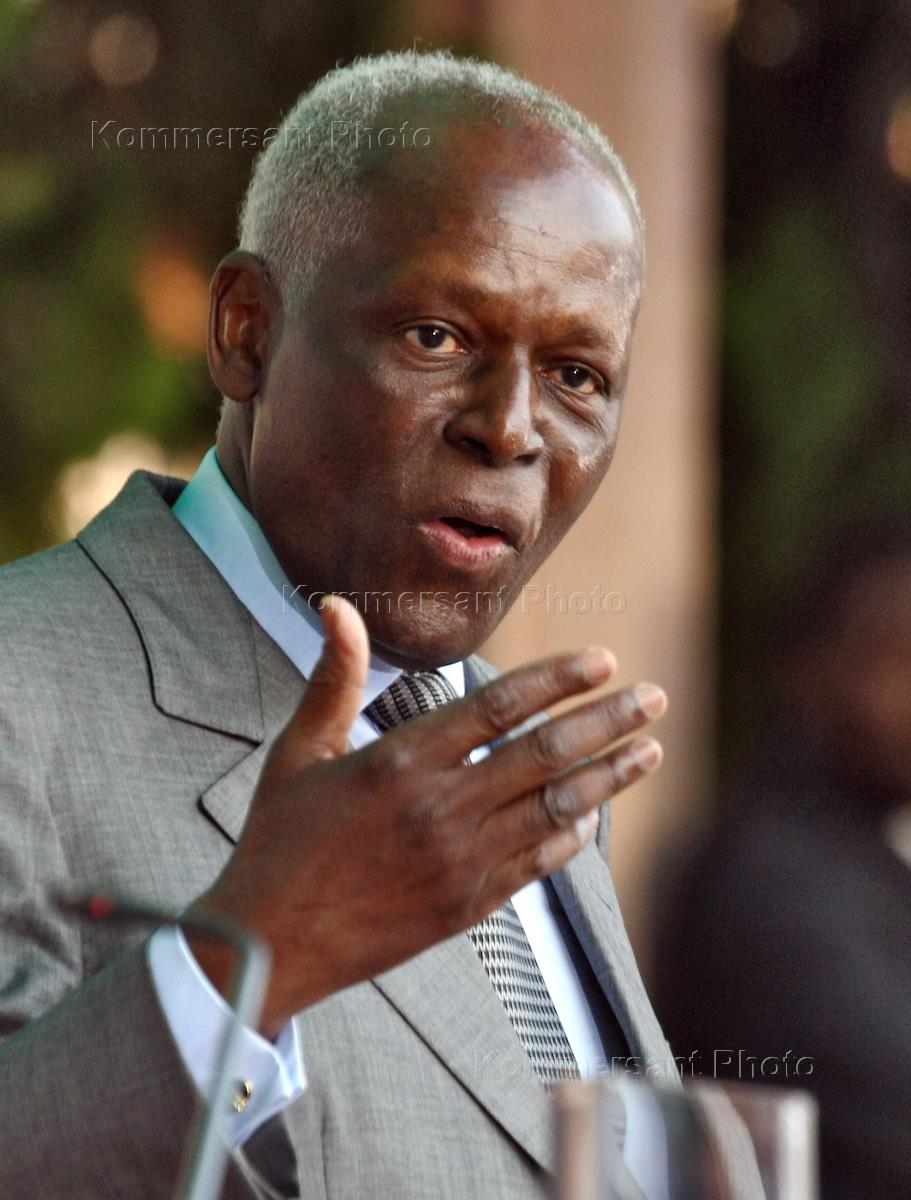 Russian President Dmitry Medvedev and Angolan President Jose Eduardo dos Santos (on the picture) give press conference after the Russia-Angola talks.