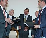 Заместитель председателя правительства России Игорь Сечин (слева) и генеральный директор "Совкомфлота" Сергей Франк (справа) во время церемонии подписания документов о сотрудничестве между "Совкомфлот" и Royal Dutch Shell. Церемония прошла в резиденции Ново-Огарево.