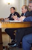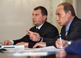 Председатель правительства России Владимир Путин (справа) и его заместитель Игорь Сечин (слева) во время церемонии подписания документов о сотрудничестве между "Совкомфлот" и Royal Dutch Shell. Церемония прошла в резиденции Ново-Огарево.