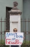 Жанровая фотография. Пикет у здания посольства Белоруссии в России. Участник пикета с плакатом "Лапы прочь от Белой Руси".
