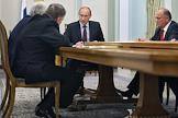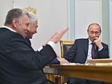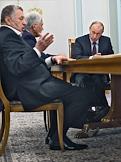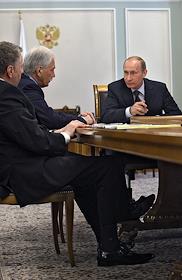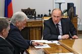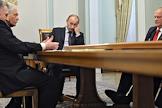 Слева направо: председатель правительства России Владимир Путин, лидер Коммунистической партии Российской Федерации (КПРФ) Геннадий Зюганов и руководитель фракции партии "Справедливая Россия" в Государственной думе России Николай Левичев во время во время встречи с лидерами фракций Государственной Думы России. Встреча прошла в резиденции Ново-Огарево.
