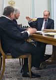 Лидер Либерально-демократической партии России (ЛДПР), заместитель председателя Государственной думы России Владимир Жириновский (слева) и председатель правительства России Владимир Путин (справа) во время во время встречи с лидерами фракций Государственной Думы России. Встреча прошла в резиденции Ново-Огарево.