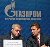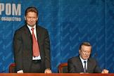 Председатель правления ОАО "Газпром" Алексей Миллер (справа) и его заместитель Александр Ананенков (слева) во время годового общего собраняия акционеров ОАО "Газпром". Собрание прошло в центальном офисе компании.
