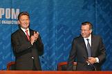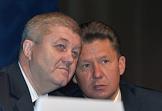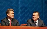 Глава РАО "Газпром" Алексей Миллер (слева) и первый заместитель председателя Правительства России Виктор Зубков (справа) во время годового общего собраняия акционеров ОАО "Газпром". Собрание прошло в центальном офисе компании.