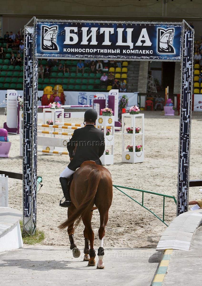 Чемпионат России по конкуру 2009 в программе международных соревнований CSI 4* прошел в конноспортивном комплексе "Битца". Президент Федерации конного спорта России (ФКСР), президент Всероссийского банка развития регионов Дмитрий Титов во время парада участников Гран-При.