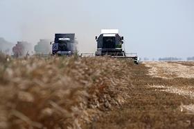 Уборка урожая на пшеничном поле ЗАО фирмы "Агрокомплекс" в станице Выселки.