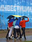 Всероссийский образовательный форум "Селигер - 2009". Жанровая фотография. Участники форума идут под дождем.