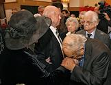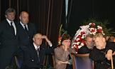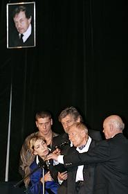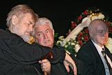 Писательница Зоя Богуславская (слева), заместитель руководителя Федерального агентства по печати и массовым коммуникациям Владимир Григорьев (в центре), поэт Андрей Вознесенский (второй справа) и художник Борис Мессерер (справа) на церемонии прощания с писателем Василием Аксеновым. Церемония прошла в Центральном доме литераторов.