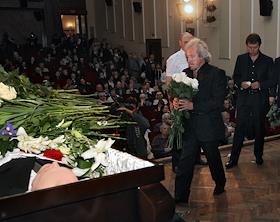 Специальный представитель президента России по международному культурному сотрудничеству Михаил Швыдкой на церемонии прощания с писателем Василием Аксеновым. Церемония прошла в Центральном доме литераторов.