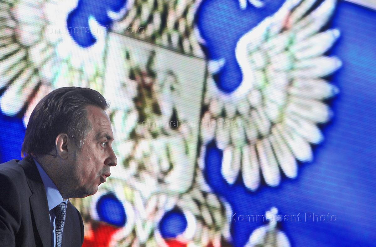 Министр спорта, туризма и молодежной политики России Виталий Мутко на пресс-конференции, посвященной презентации пяти регионов России в преддверии заседания Государственного совета по молодежной политике. Пресс-конференция прошла в ИТАР-ТАСС.