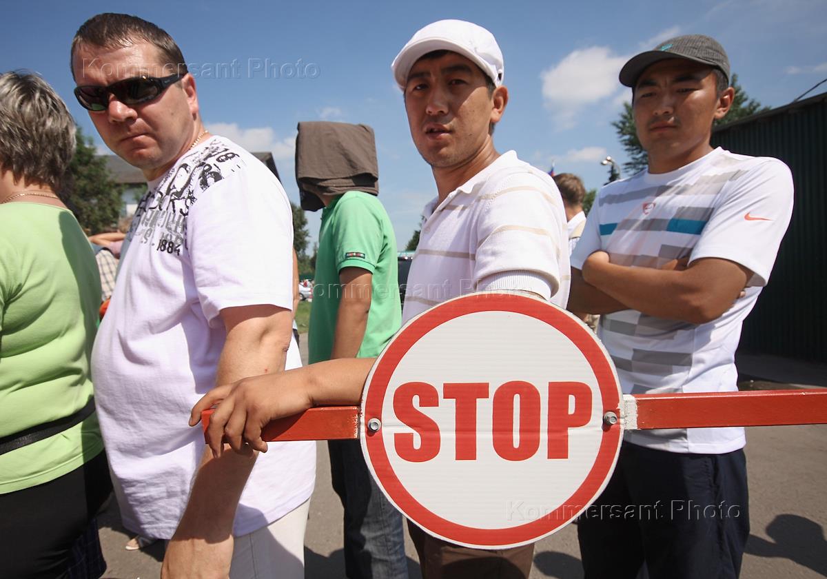Митинг протеста против переезда китайских торговцев с Черкизовского рынка на рынок "Садовод", организованный арендаторами рыночного комплекса "Садовод", у здания администрации рыночного комплекса.